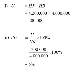 Sebelum menentukan persentase keuntungan, kita menentukan keuntungan (U) yang diperoleh Pak Dedi lebih dulu.
