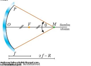c. Sinar datang melalui titik pusat kelengkungan cermin akan dipantulkan melalui titik pusat kelengkungan cermin pula.
